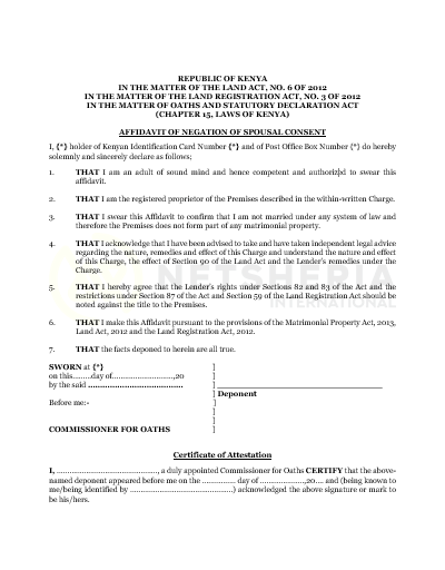 It is a crucial document that supports the charge instrument, providing legal assurance to the lender that the borrower has the right to encumber the property. In cases where the property is not considered matrimonial property, even a married person may use this affidavit to affirm that their spouse’s consent is not necessary for the charge. It is important to note that this affidavit must be commissioned by a legal professional, such as an advocate of the High Court, to ensure its validity and enforceability in legal proceedings.