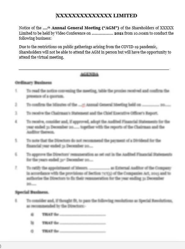 Key components of an AGM Notice typically include; Specific details about when and where the AGM will take place, or instructions for virtual attendance if applicable, A detailed list of the topics and issues to be discussed and voted on during the meeting, such as the approval of financial statements, election of directors, appointment of auditors, and any proposed resolutions, Instructions on how shareholders can appoint a proxy to attend and vote on their behalf if they cannot attend the meeting in person, Information on who is eligible to attend and vote at the AGM, typically shareholders of record as of a certain date and References to where shareholders can access relevant documents and reports, such as the annual report, financial statements, and any explanatory notes on the agenda items.