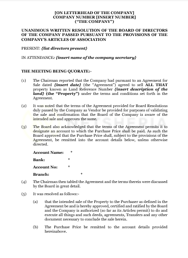 The resolution serves as a legal record of the board’s decision-making process and is often required for the execution of the sale and for future reference in case of disputes or for auditing purposes. It is a demonstration of the board’s fiduciary duty to act in the best interest of the company and its shareholders, ensuring that the sale is conducted transparently, fairly, and with due diligence.