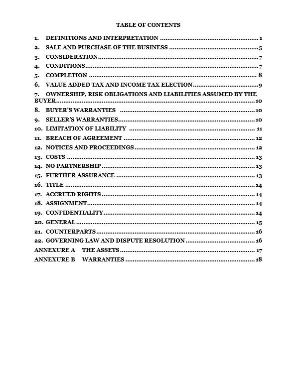 Key components of a Business and Asset Transfer Agreement typically include; Names and details of the buyer and seller involved in the transaction, Detailed listing of the assets being transferred, including tangible assets like equipment and inventory, and intangible assets like intellectual property and goodwill, The agreed-upon amount for the transfer of the business and its assets, along with payment terms and conditions, Specification of which liabilities, if any, the buyer will assume as part of the transaction, Assurances from the seller regarding the condition and ownership of the assets, and any relevant legal compliance, Conditions that must be met before the transaction can be finalized, such as obtaining necessary approvals and completing due diligence and Any ongoing responsibilities of the seller or buyer after the transfer is complete, such as transitional support or non-compete clauses.
