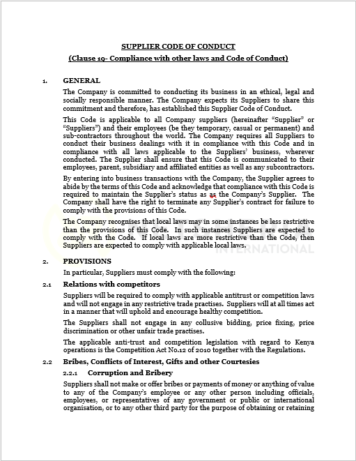 The Code of Conduct also provides a framework for monitoring and enforcing these standards, which is essential for maintaining a company’s reputation and consumer trust. Suppliers are usually required to acknowledge and commit to this code, ensuring that their operations align with the company’s values and ethical standards. In essence, a Supplier Code of Conduct is a commitment to ethical business conduct and a cornerstone of responsible supply chain management.