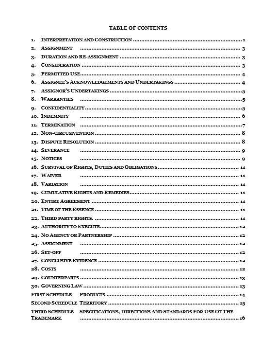 A Deed of Assignment of Trademark is a document through which the registered proprietor of a trademark transfers his/her/its rights, title and interest in the trademark to a third party. This gives the third party the right to use the trademark of the owner.