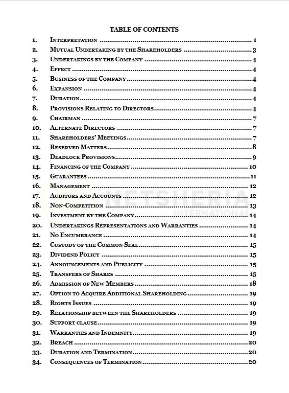 A Shareholders Agreement is a legally binding document that outlines the rights, responsibilities, and relationships among the shareholders of a company. It serves as a framework for how the company should be operated and managed, detailing the roles of shareholders, directors, and officers. This agreement typically covers key aspects such as the issuance and transfer of shares, the distribution of profits, and the decision-making processes within the company. It also includes provisions for dispute resolution and mechanisms to protect minority shareholders.